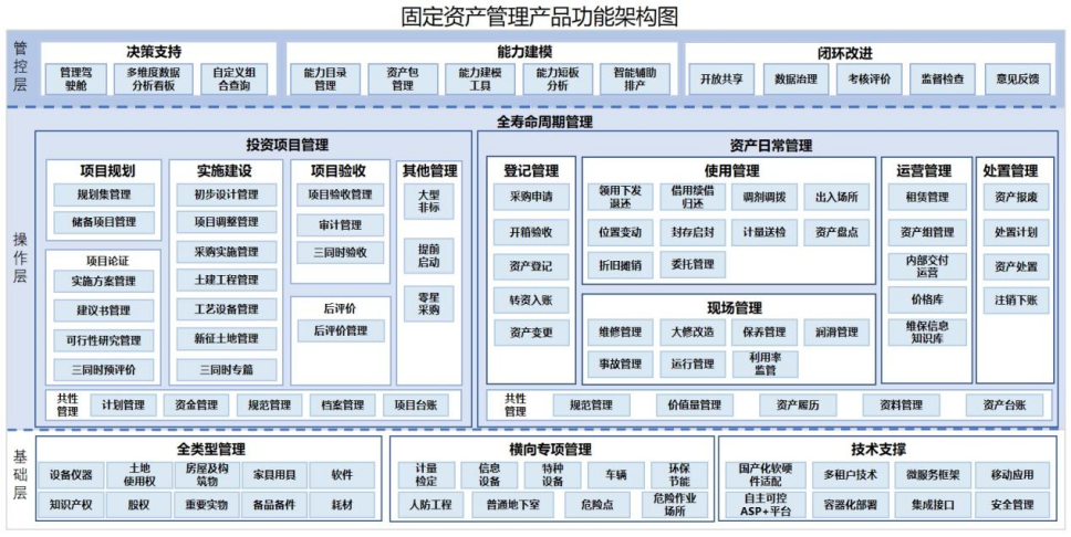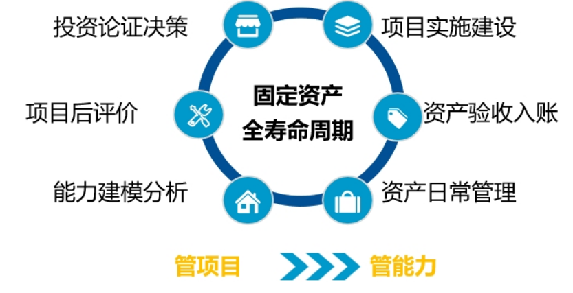 投資經(jīng)營(yíng)全過(guò)程:從固定資產(chǎn)投資項目規劃、投資決策、項目實(shí)施、驗收,到固定資產(chǎn)運營(yíng)、處置、項目評價(jià)全壽命周期管理。