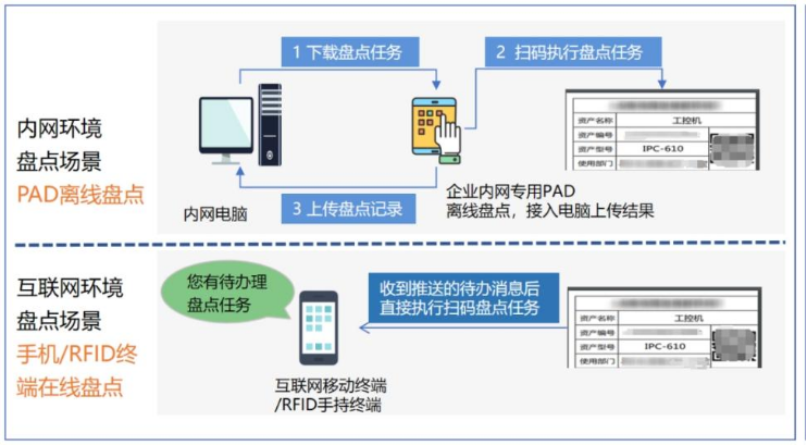 移動(dòng)智能應用:通過(guò)RFID等智能標簽和智能手持終端設備,實(shí)現在資產(chǎn)現場(chǎng)的快速數據采集,實(shí)現智能范圍管控和資產(chǎn)快速盤(pán)點(diǎn)。