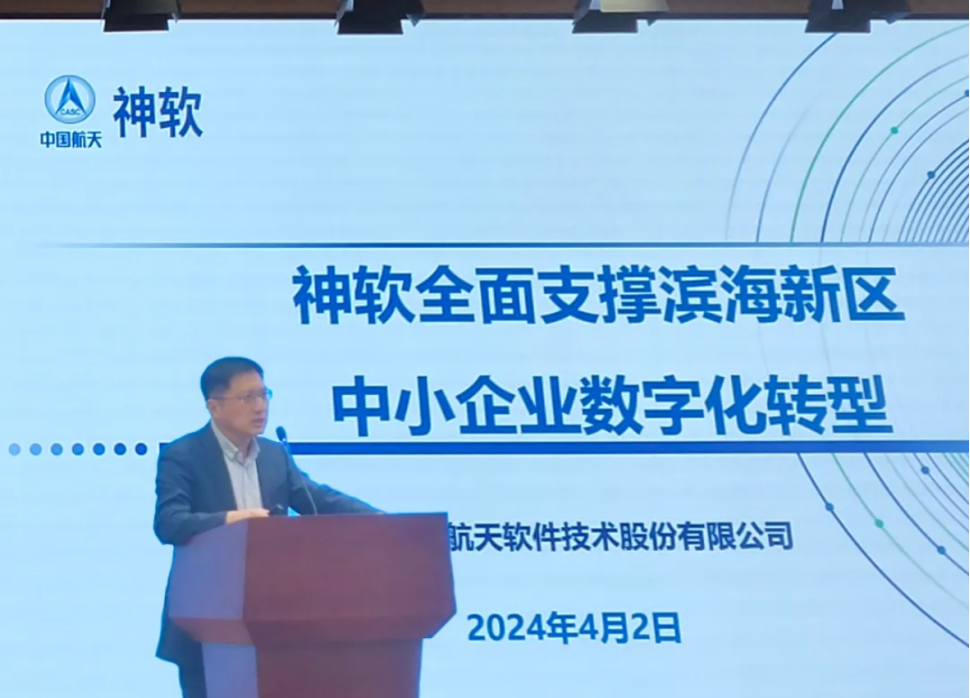 2024年4月2日,神軟公司受邀請出席在天津市濱海新區舉行的“濱海新區中小企業(yè)數字化轉型城市試點(diǎn)數字化服務(wù)商大會(huì )”。作為主要服務(wù)商代表,神軟公司業(yè)務(wù)副總經(jīng)理呂明理代表公司在會(huì )議上發(fā)言。