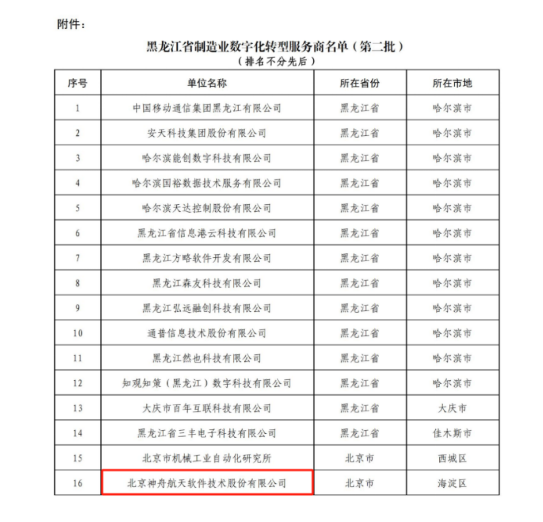 6月11日,黑龍江省工信廳公布了《黑龍江省制造業(yè)數字化轉型服務(wù)商名單(第二批)》,神軟公司名列其中。
