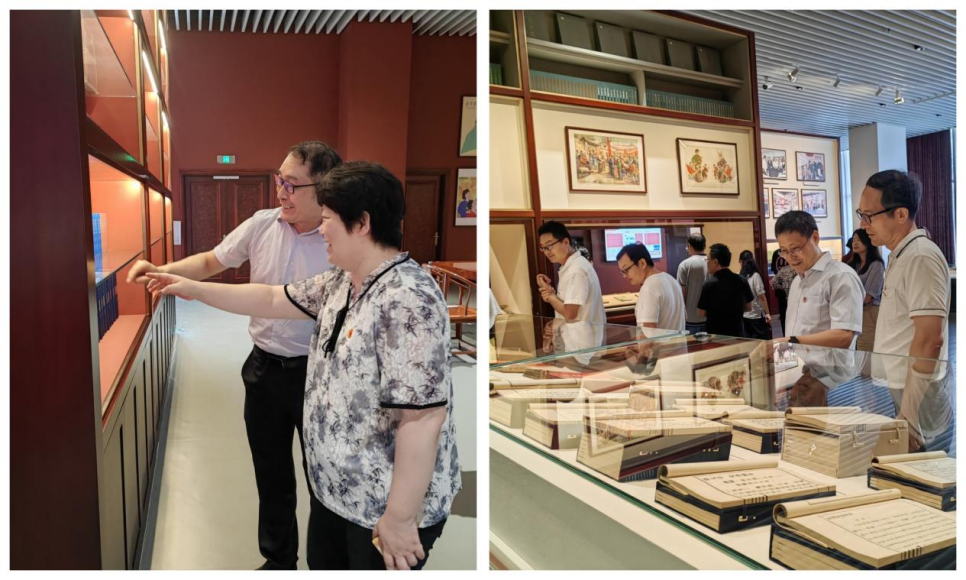 燕山腳下,青山黛瓦。中國國家版本館中央總館依山而上,典雅瑰瑋,彰顯濃厚的中國文化韻味和書(shū)卷氣息。版本是中華文明印記、文化符號和文脈信息的載體。國家版本館以中國歷史發(fā)展、中華文明演進(jìn)為主線(xiàn),奠定“1個(gè)主題展覽+2個(gè)基本陳列+4個(gè)專(zhuān)題展覽”的格局。在講解員的引導下,黨員們先后參觀(guān)了國家版本館文興樓、文華堂、文瀚閣、蘭臺洞庫,觀(guān)看了“真理之光—馬克思主義中國化時(shí)代化經(jīng)典版本展”、“斯文在茲—中華古代文明版本展”、“見(jiàn)證偉業(yè)——中華民族復興版本展”等專(zhuān)題展覽,通過(guò)各類(lèi)經(jīng)典版本,充分領(lǐng)略了中華文化的底蘊之深、文脈之盛,見(jiàn)證了中華民族偉大復興的時(shí)代偉業(yè)。