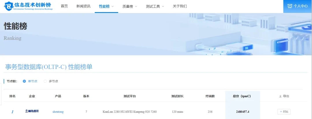 神通數據庫登頂“信息技術(shù)創(chuàng )新榜”