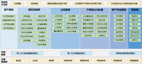 系統包含資產(chǎn)規劃管理、投融資管理、公司管理、產(chǎn)權轉讓與處置管理、資產(chǎn)評估管理、綜合統計分析6大模塊和1個(gè)移動(dòng)端應用,滿(mǎn)足國家信息系統分級保護和等級保護的相關(guān)要求。