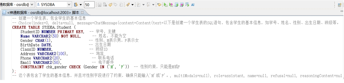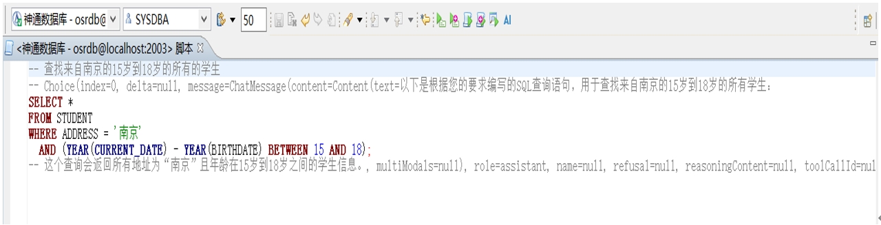為進(jìn)一步賦能企業(yè)高效利用數據資源,神通數據庫的DBStudio工具中引入了DeepSeek能力改寫(xiě)了原有的AI智能補全功能,使用者能夠以對話(huà)的便捷方式,將自然語(yǔ)言無(wú)縫轉化為SQL及復雜查詢(xún)語(yǔ)句,這一功能徹底扭轉了以往數據庫交互依賴(lài)專(zhuān)業(yè)編碼的局面,升級為“全民對話(huà)”的模式,大大降低了企業(yè)數據驅動(dòng)能力的技術(shù)門(mén)檻。