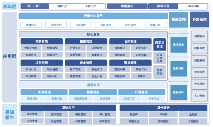 ??財金管控系統是為適應集團化企業(yè)“戰略管控”、“財務(wù)管控”、“業(yè)務(wù)管控”的管理模式的現狀研發(fā)的產(chǎn)品,擁有“高可用、高擴展、高易用”的產(chǎn)品特色,將移動(dòng)互聯(lián)、人工智能、大數據技術(shù)與財務(wù)信息化經(jīng)驗(系統功能、安全保密、模塊劃分、業(yè)務(wù)需求等)積累充分結合,為企業(yè)提供符合自身業(yè)務(wù)特點(diǎn)的開(kāi)放型財務(wù)共享服務(wù)平臺。